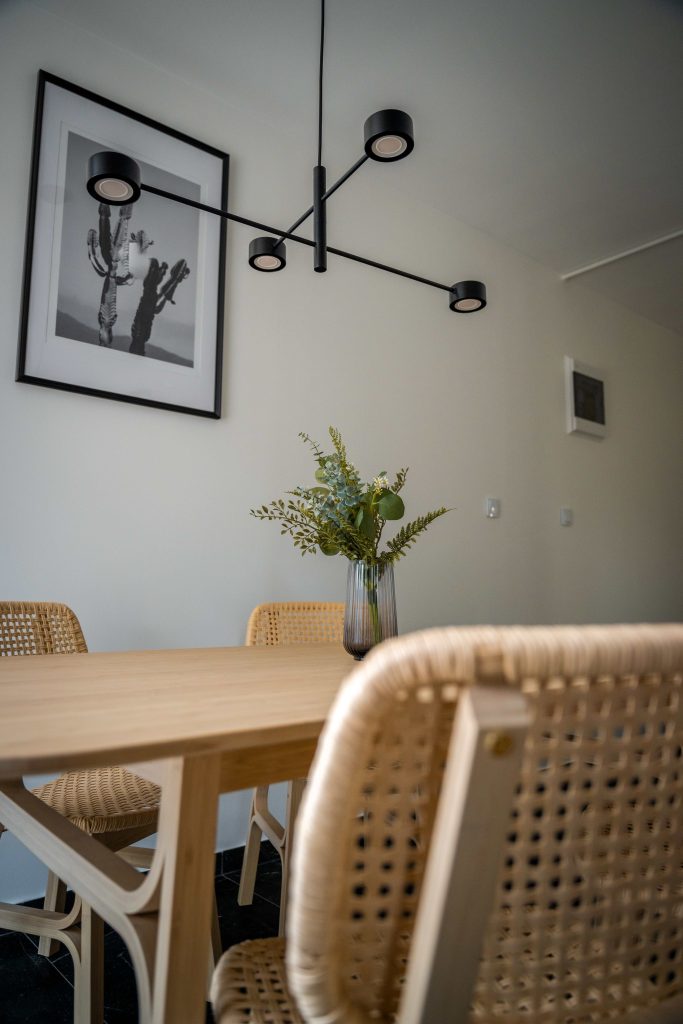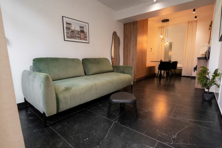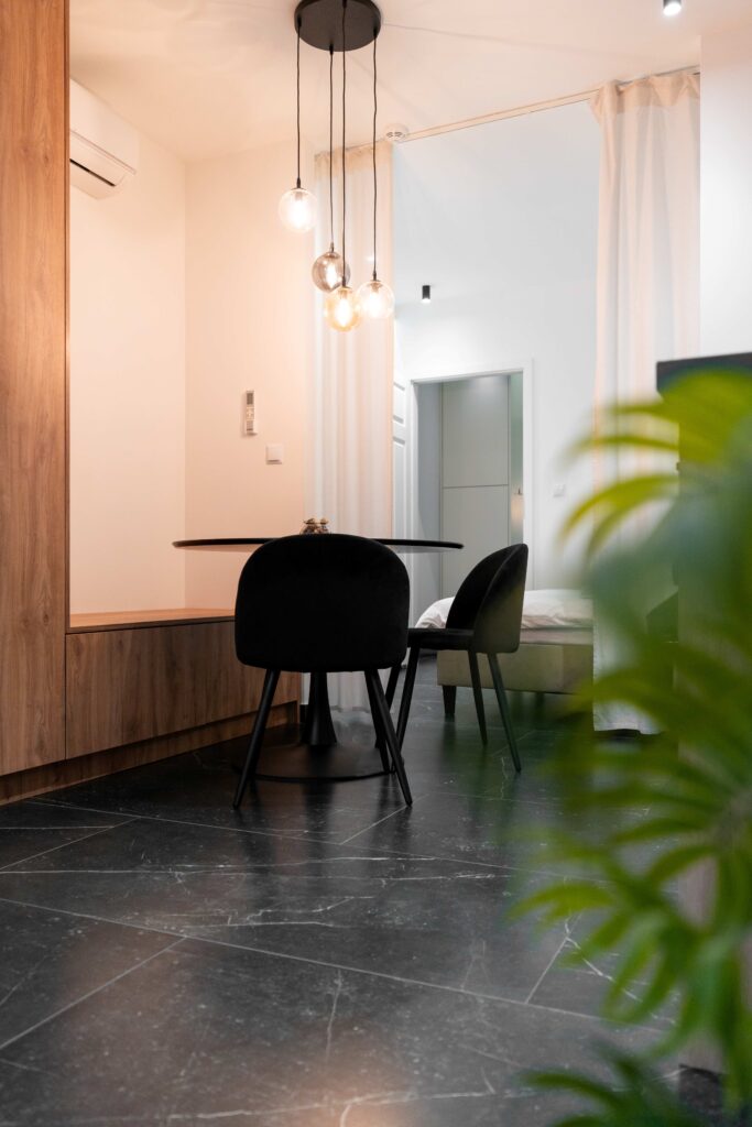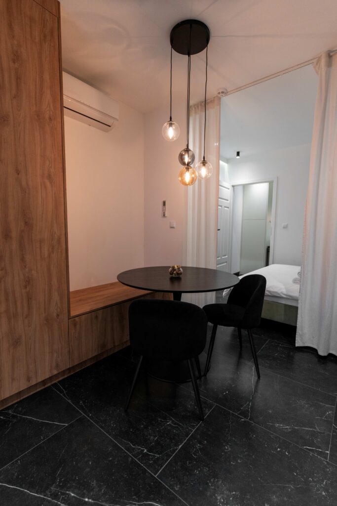 Stylowe i nowoczesne wnętrze, idealne dla trzech osób.