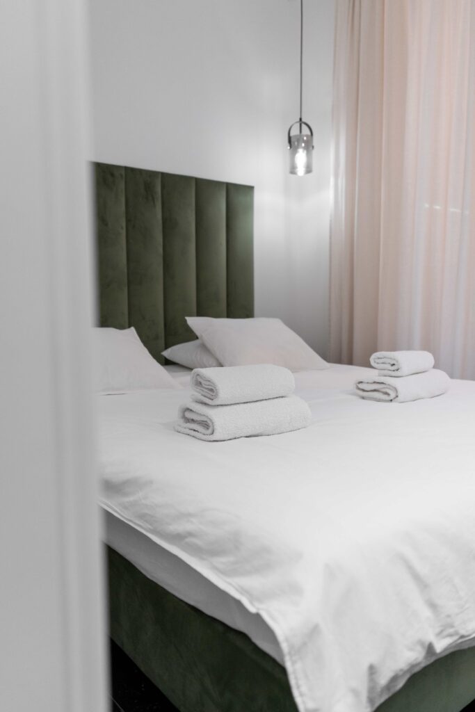 Elegancki apartament z klimatyzacją to świetny wybór na każdy sezon. Ciesz się komfortem w chłodniejszych dniach i świeżością w cieplejsze. W kuchni znajdziesz piekarnik, a także wszystko, czego potrzeba do przygotowania pysznych posiłków. Apartament wyposażony jest także w pralkę i suszarkę na ubrania, co zapewnia dodatkowy komfort. W łazience czekają na Ciebie świeże ręczniki i kosmetyki. Idealny wybór na wyjątkowy pobyt! W szafie znajduje się również pudełko z grami, które umilą czas spędzony w apartamencie.